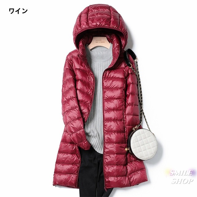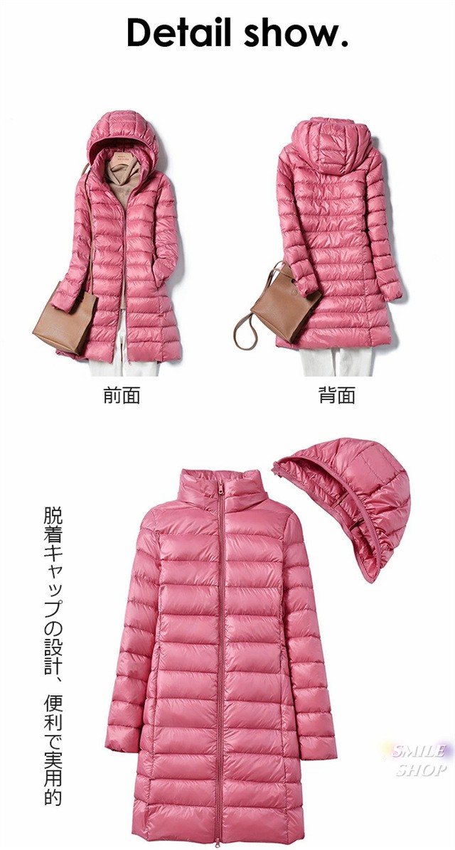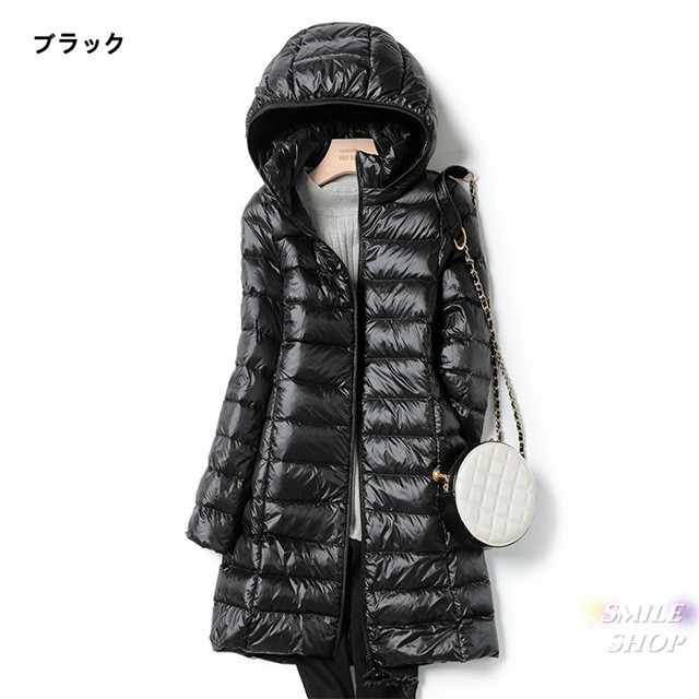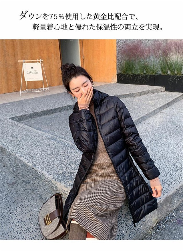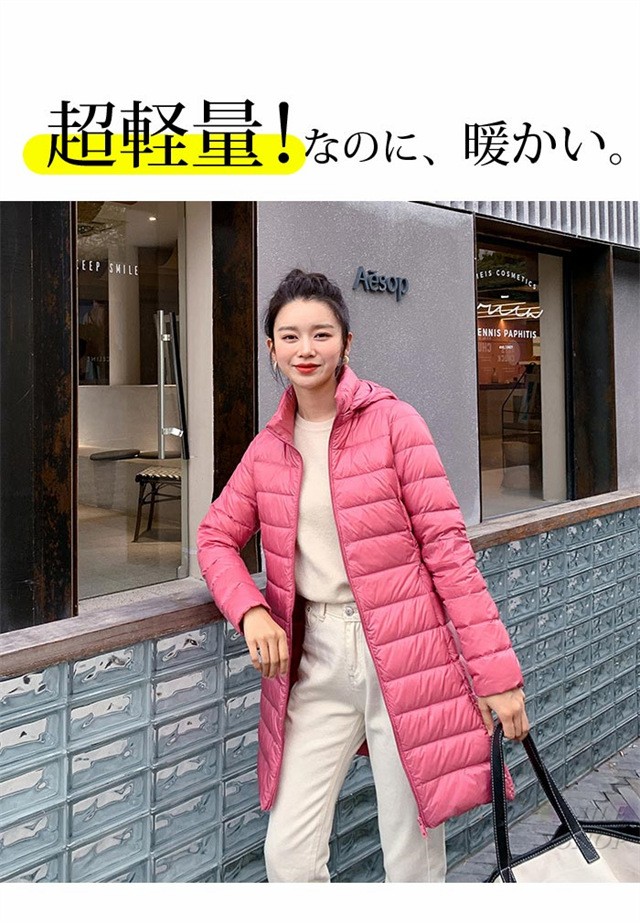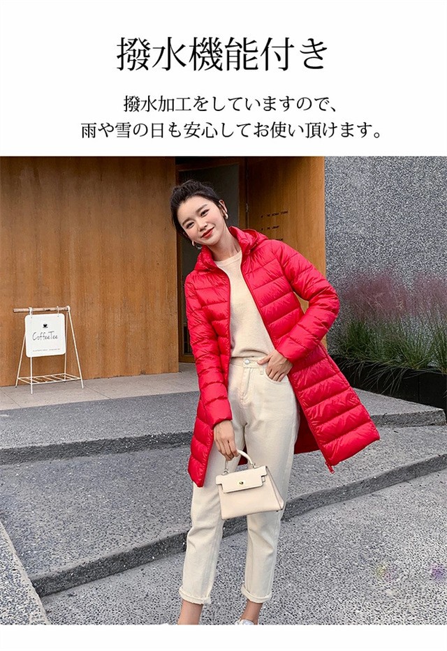 【ポイント5倍!】【マフラーおまけ!】ダウンコート ダウンジャケット レディース 収納付き ロン丈 軽量 薄型 フード付き 冬物 アウター 保温 防風 防寒 撥水 ライトダウン 細身 7色 M-5XL