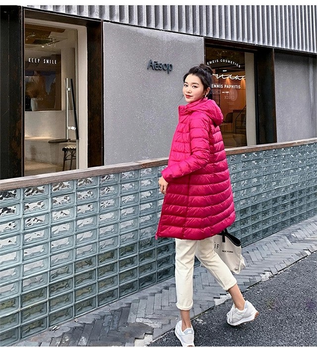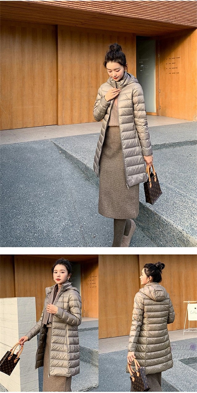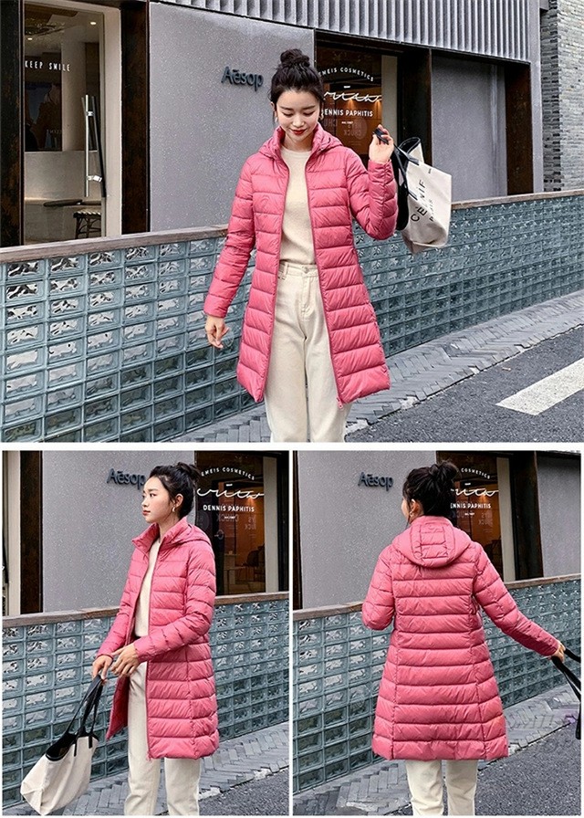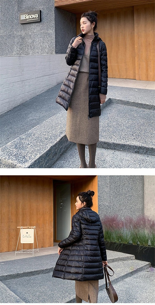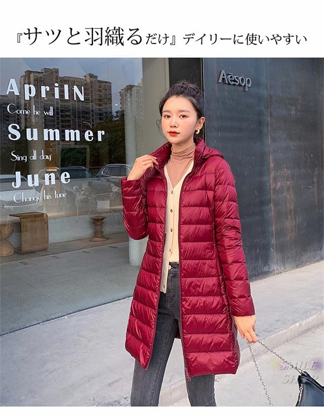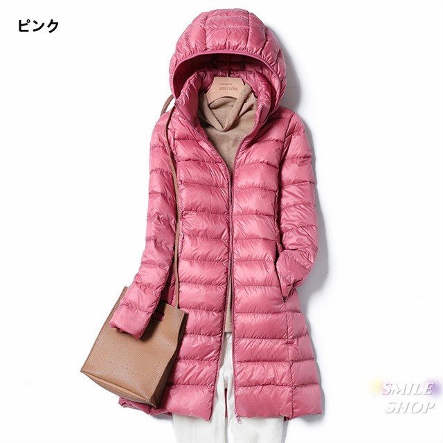 【ポイント5倍!】【マフラーおまけ!】ダウンコート ダウンジャケット レディース 収納付き ロン丈 軽量 薄型 フード付き 冬物 アウター 保温 防風 防寒 撥水 ライトダウン 細身 7色 M-5XL