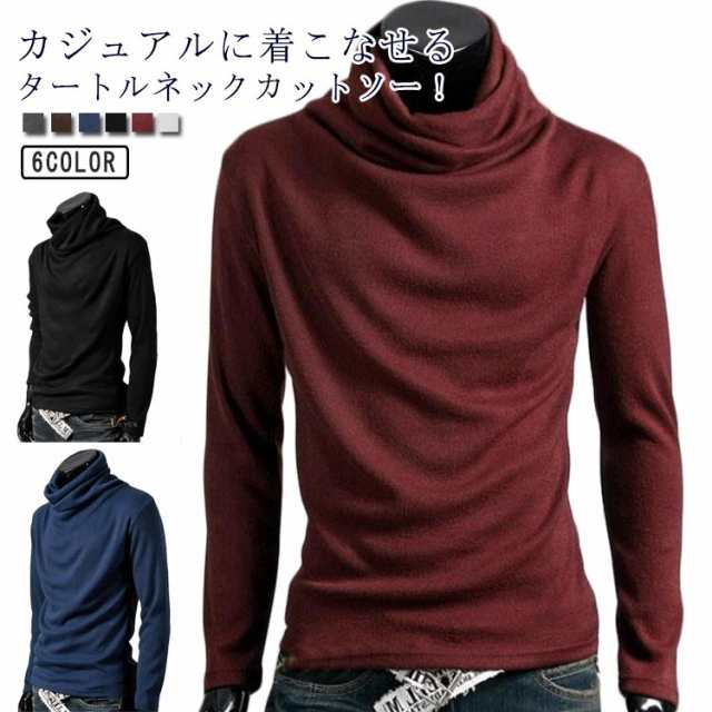 【ポイント5倍!】全6色!ロングスリーブ カットソー メンズ ハイネック トップス インナー ロンT tシャツ カットソー 細身 タートルネック ロングTシャツ 長袖 ティーシャツ Tシャツ 暖かい 柔らかい ストレッチ メンズファッション 無地 春 秋 冬 シンプル