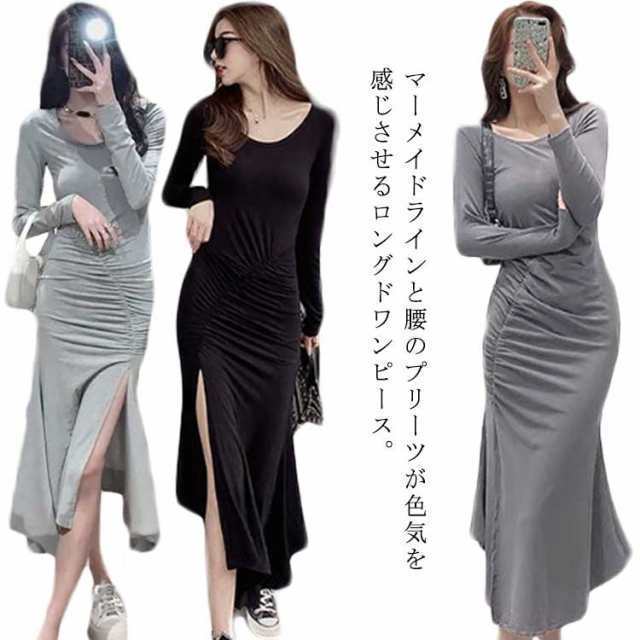 マーメイドスカート マーメイドワンピース 長袖 スリット入り タイトワンピース フレアワンピース ロングワンピース ロングワンピ aライ