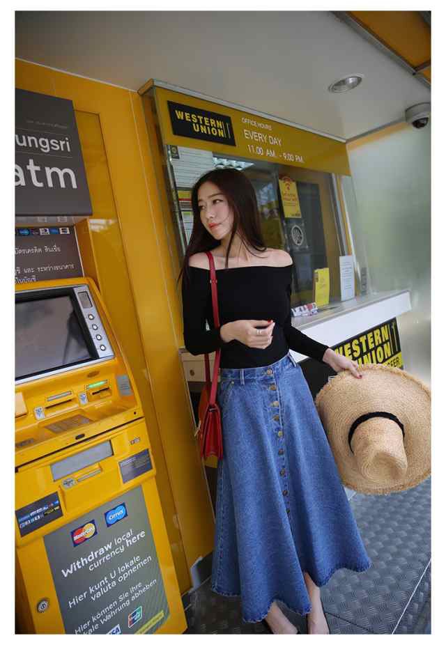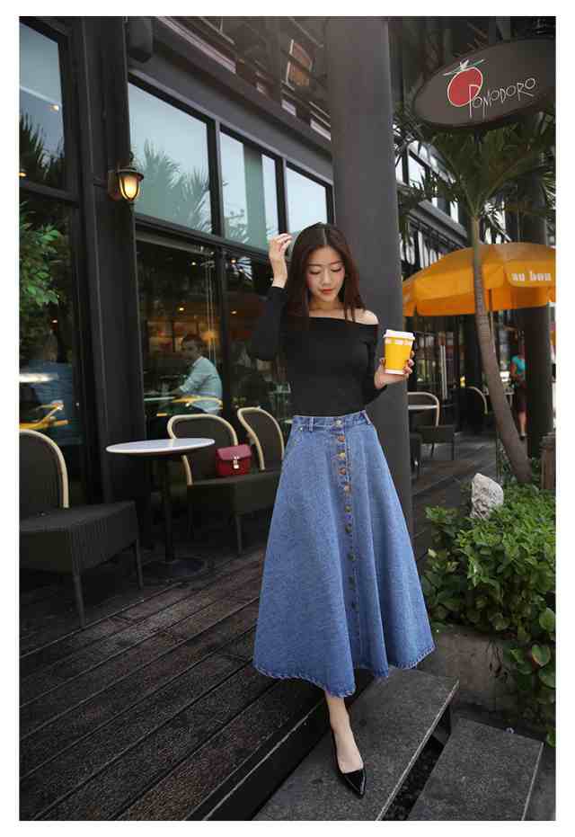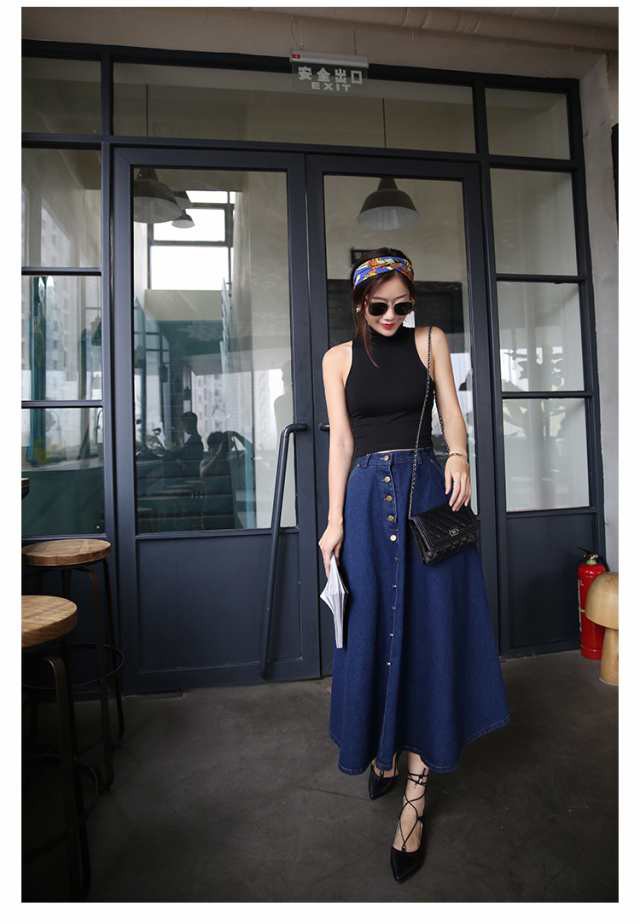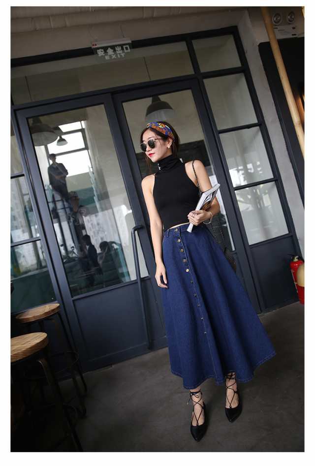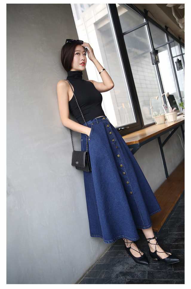 レディース ロング スカート 人気 通販 おすすめデニム ハイウエスト ボタン フレア マキシ 膝下 クール 春 大人 アウトドア 女子会 スタイル 韓国 無地 夏 かわいい 上品 お泊まり 通学 韓国系 10代 セクシー 秋 おしゃれ イベント デート オルチャン 20代 マキシ 個性的
