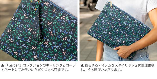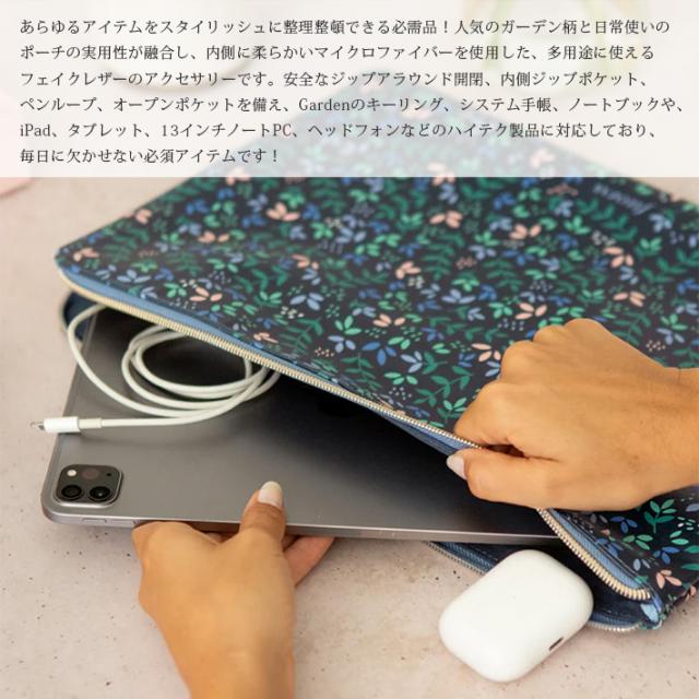 あらゆるアイテムをスタイリッシュに整理整頓できる必需品!人気のガーデン柄と日常使いのポーチの実用性が融合し、内側に柔らかいマイクロファイバーを使用した、多用途に使えるフェイクレザーのアクセサリーです。安全なジップアラウンド開閉、内側ジップポケット、ペンループ、オープンポケットを備え、Gardenのキーリング、システム手帳、ノートブックや、iPad、タブレット、13インチノートPC、ヘッドフォンなどのハイテク製品に対応しており、毎日に欠かせない必須アイテムです!