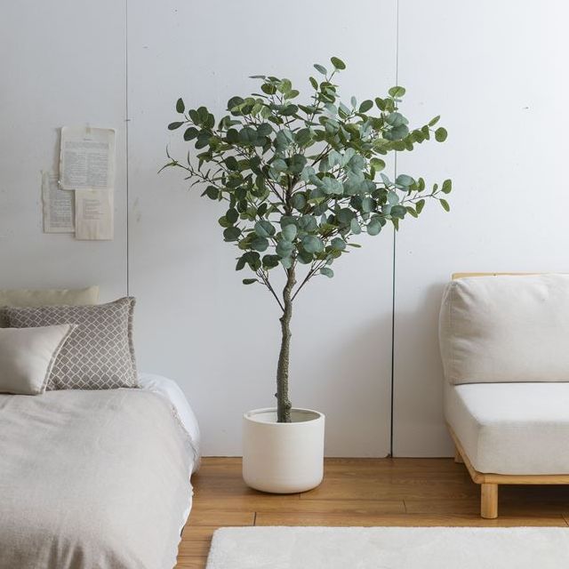 日常空間にグリーンを気軽に取り入れられる、光触媒人工観葉植物のユーカリ。