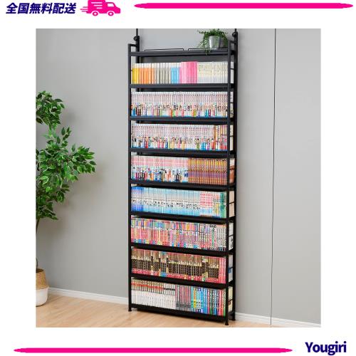 【スリムでも大容量】奥行15.5?なので狭いお部屋でも圧迫感なく使え、なおかつ単行本を最大約410冊収納できる大容量のラック 【突っ張り式で壁面収納のできあがり】突っ張り式なので天井近くまで収納として有効活用できます。 【こぼれ止め付き】設置位置が前後選べるこぼれ止め付きだから、用途によって付け替えができ、落下を防止できます。