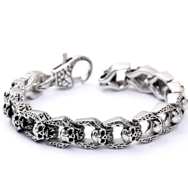 ファッションパンクスカルヘッドチタン鋼メンズブレスレットヴィンテージロックオートバイブレスレットジュエリー