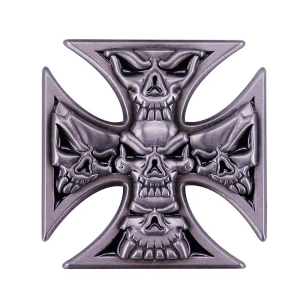 マルタ グレー アイアン クロスとスカル ピン バッジ バイカー オートバイ、ホット ロッド、カスタム カルチャー ワールド人気のアクセサリー