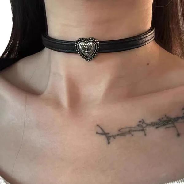 COS パンクゴシックスカルスターレザーチョーカーネックレス女性ガールズ Y2K 黒チョーカーパーティージュエリーギフト