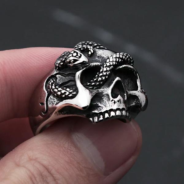 ヴィンテージパンクヒップホップスネークスカルリングステンレス鋼スネークリング男性バイカーユニークな動物お守りジュエリーギフトドロップシッピング