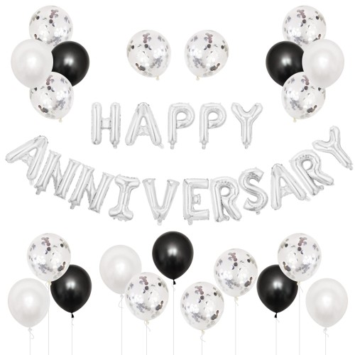 BTZO 風船 バルーン 飾り付け 装飾 HAPPY ANNIVERSARY アニバーサリー 記念日 告白 バレンタイン サプライズ デコレーション パーティー 誕生日 結婚式 おしゃれ お祝い ホワイト ブラック セット