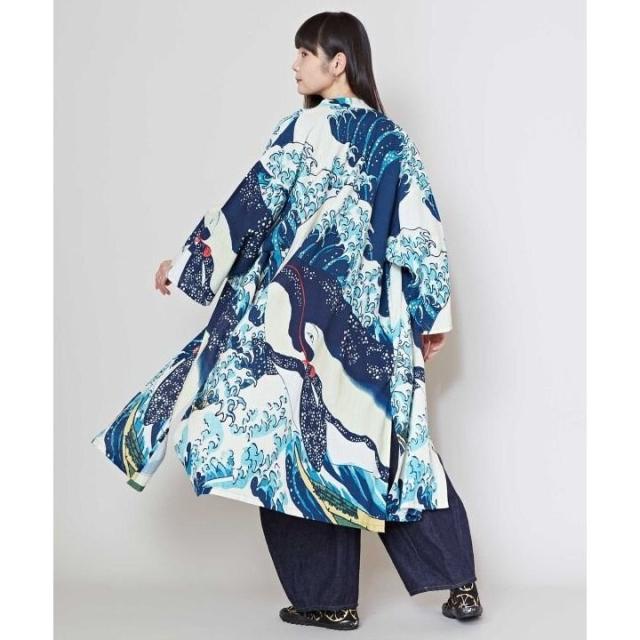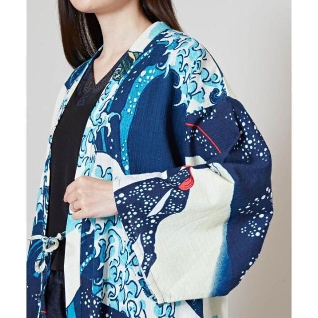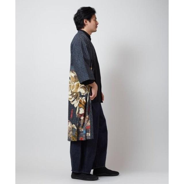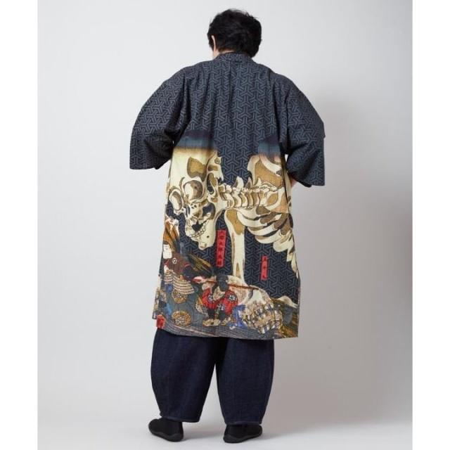 日本の美をまとうNIPPON ARTシリーズの羽織。浮世絵をモチーフにリデザインした大胆で粋な柄が印象的です。表情のあるコットンドビー生地を使用し、ゆったりとしたシルエットで快適に羽織れます。がしゃどくろや猫、兎など多彩な柄展開で、両サイドには便利なポケット付き。性別を問わず楽しめる上品な和柄羽織です。