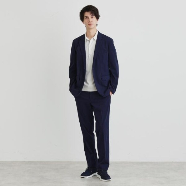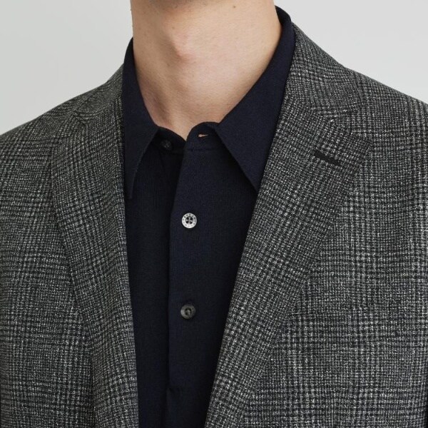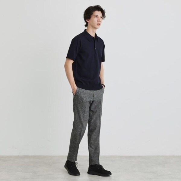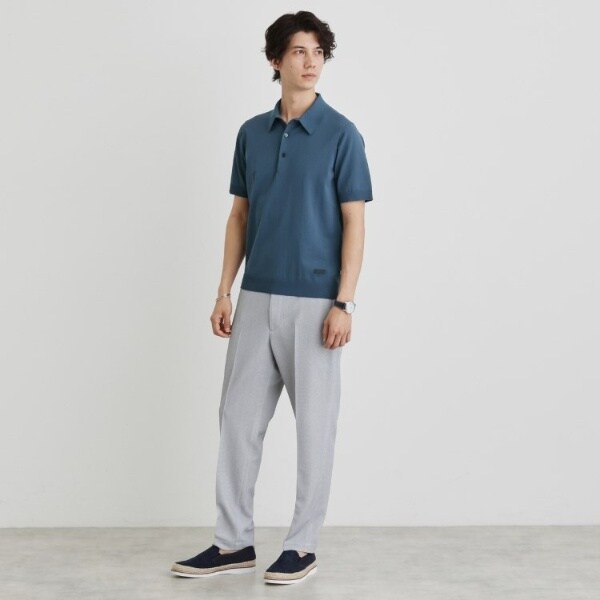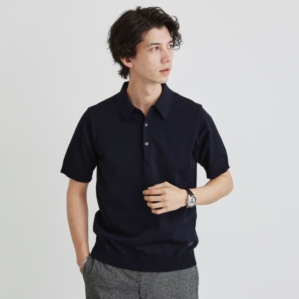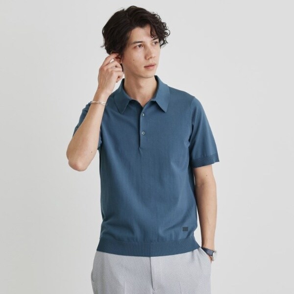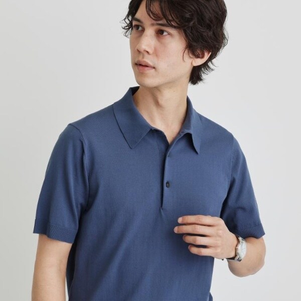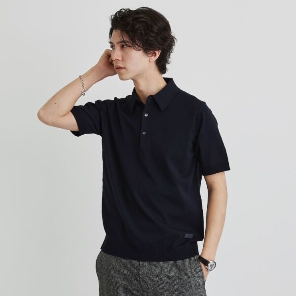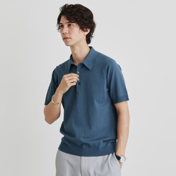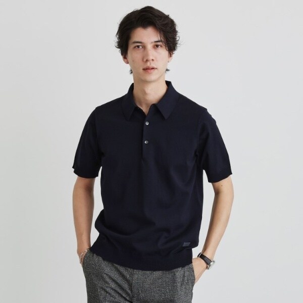 着心地も見た目もジャケットとの相性良好なニットポロシャツです。