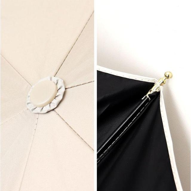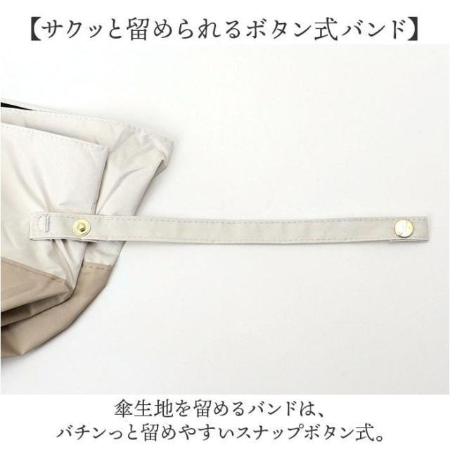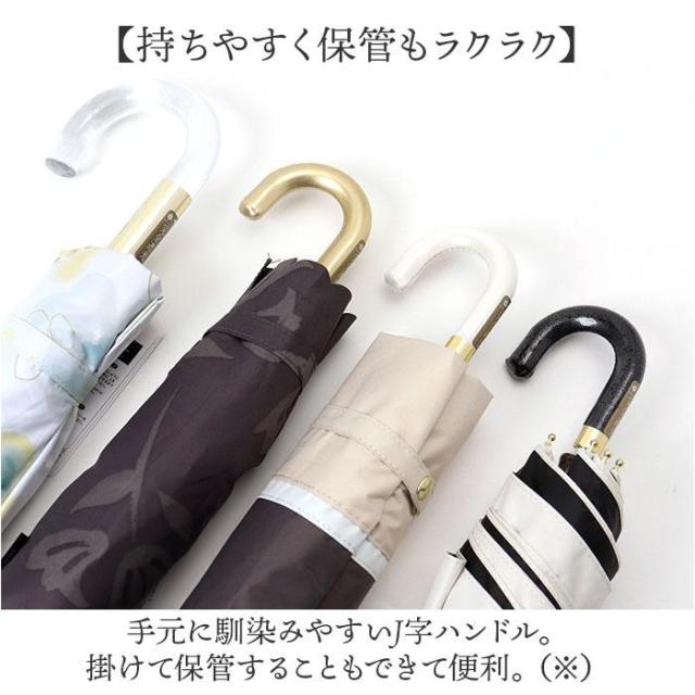 【晴れの日も雨の日もお出かけの相棒】日傘&雨傘として使える!「Parasol 完全遮光折りたたみ傘」親骨55cm。【一級遮光で晴れた日の味方】UVカット率99.9%、UPF50+!遮光率100%で、気になる紫外線をしっかりカット。【暑い日の熱中症対策にも効果的】内側ブラックコーティング。光を反射させて温度の上昇を防ぐ遮熱効果は、30%以上。(※)気候使用状況により、体感温度は変わります。【お天気が不安定な日にも対応】撥水加工を施し、雨の日にも使える兼用傘。どちらの天候も万能に対応。【いつでもどこでもイージーオープン】傘骨をポキポキ折る手間不要。スムーズに開閉できる、6本骨の手開き仕様。【安心・安全のセーフカバー付き】爪や指を挟むのを防止する安全ロクロ。開閉時のケガを防ぎ、ネイルを施した爪も保護。【しなやかで丈夫なグラスファイバー】親骨の一部は、しなやかで弾力性のあるグラスファイバー。折れにくく、頼れる耐風仕様◎【軽やかな使い心地でノンストレス】中棒は軽量でスリムなアルミ骨を使用。スライドもラクラク、傘をさす時の負担も軽減。【サクッと留められるボタン式バンド】傘生地を留めるバンドは、バチンっと留めやすいスナップボタン式。【持ちやすく保管もラクラク】手元に馴染みやすいJ字ハンドル。掛けて保管することもできて便利。(※)カラーにより、ハンドルの大きさやカラーが異なります。【持ち歩きやすい収納袋付き】傘生地と同じ柄の、スナップボタン式収納袋が付属。スマートに持ち運びOK。【オンオフ問わない上品なデザイン】シーンを選ばず使えるデザインをラインナップ。大人女子にぴったりのアイテム。