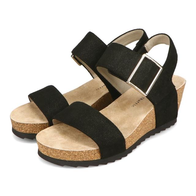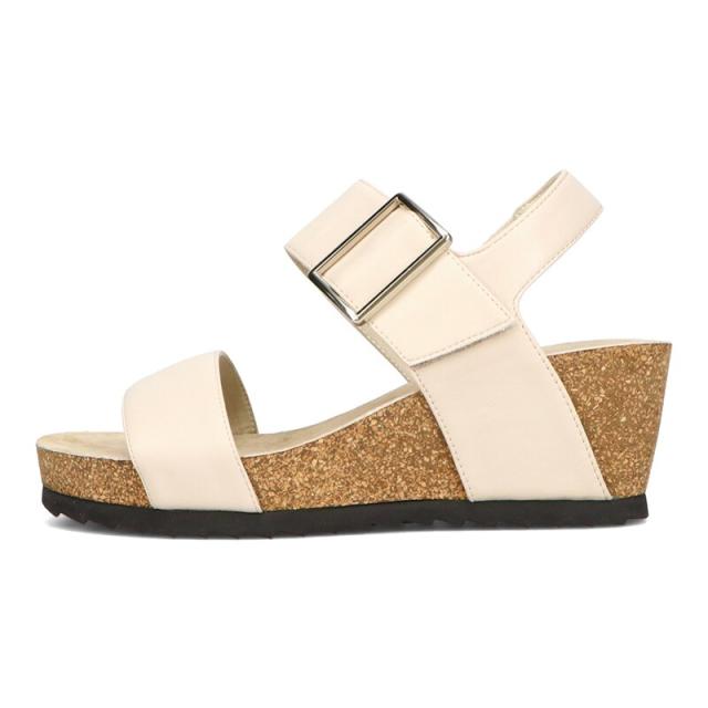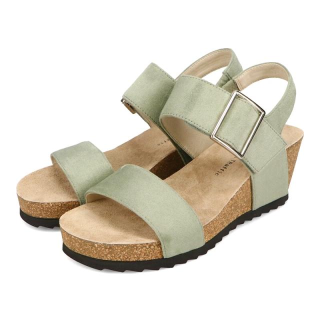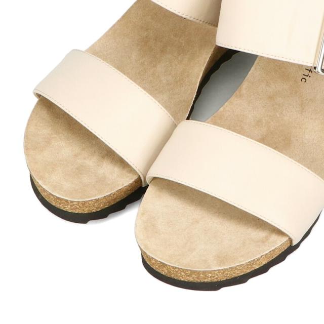 ●ウエッジソールが安定感抜群のダブルベルトサンダルは中敷にスエードの本革を使用したソフトな履き心地が特徴。