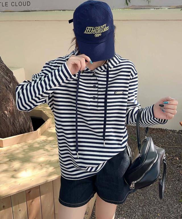 デニムやショートパンツと合わせて、リラックスしたコーディネートが楽しめます。スポーツスタイルを意識して、スニーカーやキャップと組み合わせると、アクティブでおしゃれな印象に。