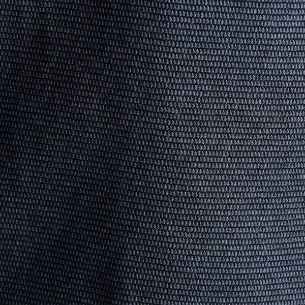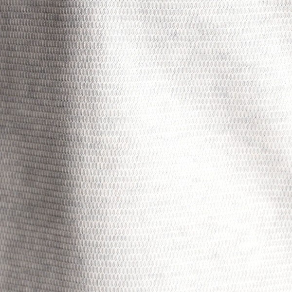 トップ調の綿糸とポリエステルを交織する事で杢調の色目と強度を出し、網目状に見える地柄ジャカード織りの国産ジャージ素材です。バーズアイ組織で鹿の子素材の様なシャリ感と透け感のある素材感が清涼感を高めます。カットソー素材の為、タテもヨコも伸びますので、とても着やすいです。