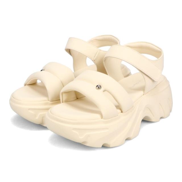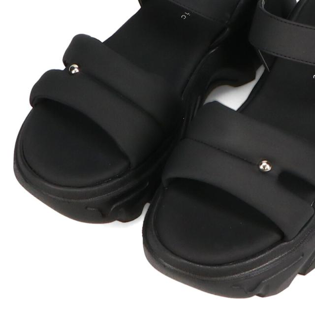 立体感が可愛いパデットのボリューミーさを、サイドのカットラインと丸いスタッズで抜け感をプラスした注目度No.1のサンダル。