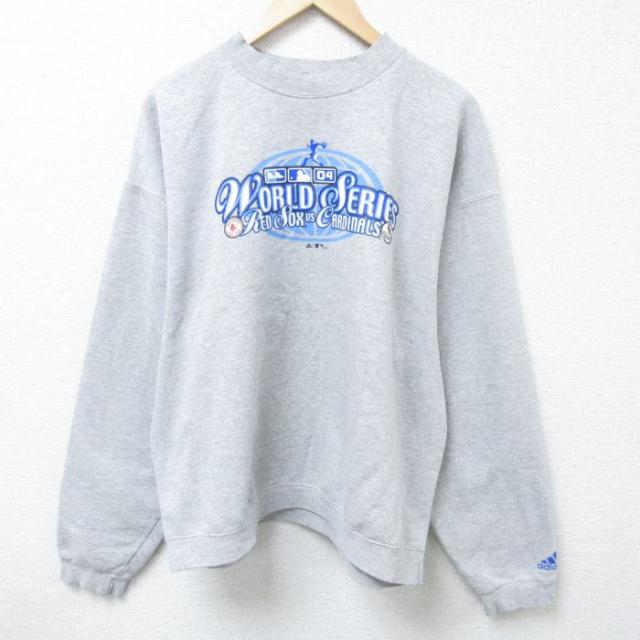 古着 アディダス adidas 長袖 スウェット メンズ 00年代 00s MLB ボストンレッドソックス 大きいサイズ クルーネック グレー 中古 古着