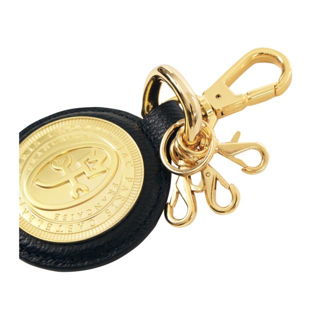 より男っぽさを強調したハイグレードな小物シリーズ「プルトン」のキーホルダーです。オールレザーの上質なメンズシリーズ。フランスのコインをモチーフにした立体的なゴールドプレートと、その周りに施されたゴールドプリントがハイグレードな男っぽさを演出します。オリジナリティを出したい方へのプレゼントなどにもおすすめです。