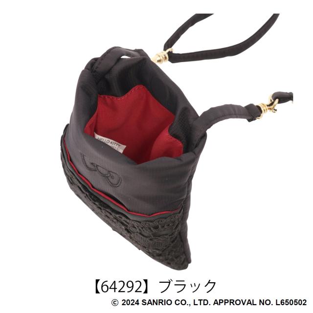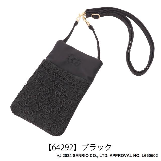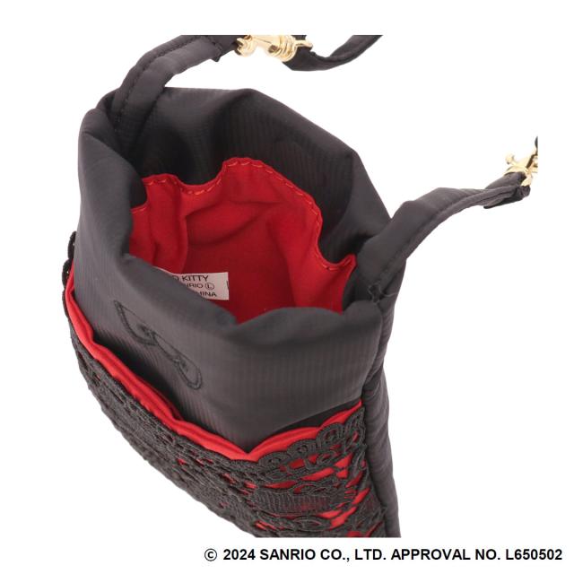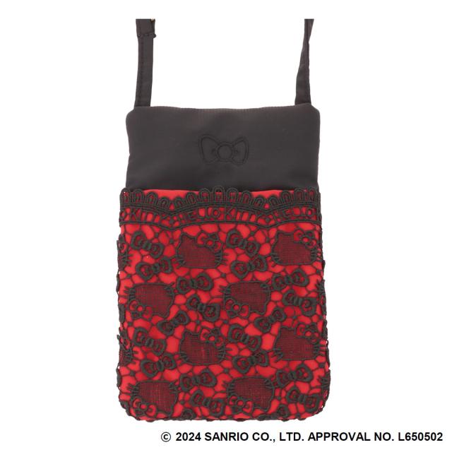 ハローキティ柄のギュピールレースをふんだんに使用し大人可愛い+エレガンスを表現。ショルダーポーチ、ウエストポーチ、また簡単に取り外せるカンが付いているのでバッグに取り付けたりと3wayに使用可能。(※レース模様には個体差があります。)