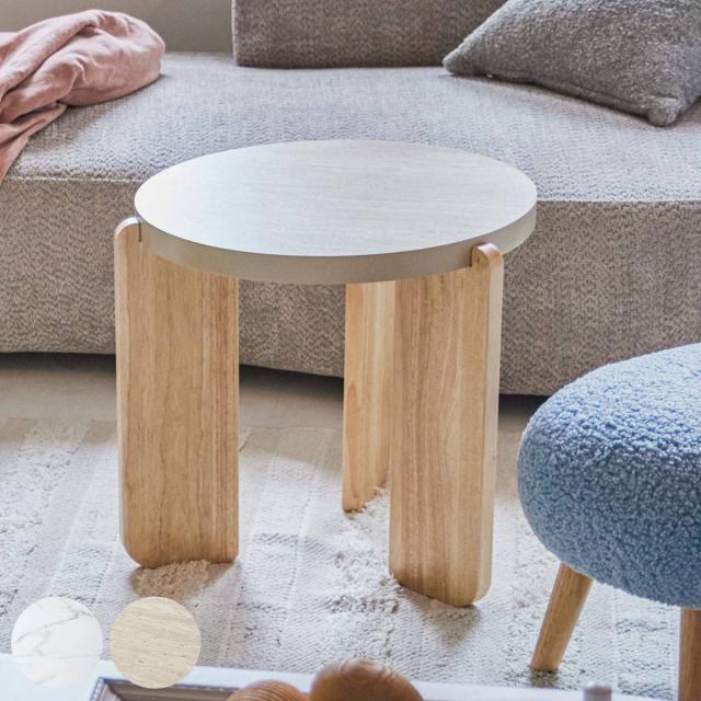 サイドテーブル 円型 高さ50cm ラウンドテーブルS ( 大理石調 木目調 丸 ラウンド ミニテーブル 木製 天然木 ナイトテーブル ソファ ベッド 横 )