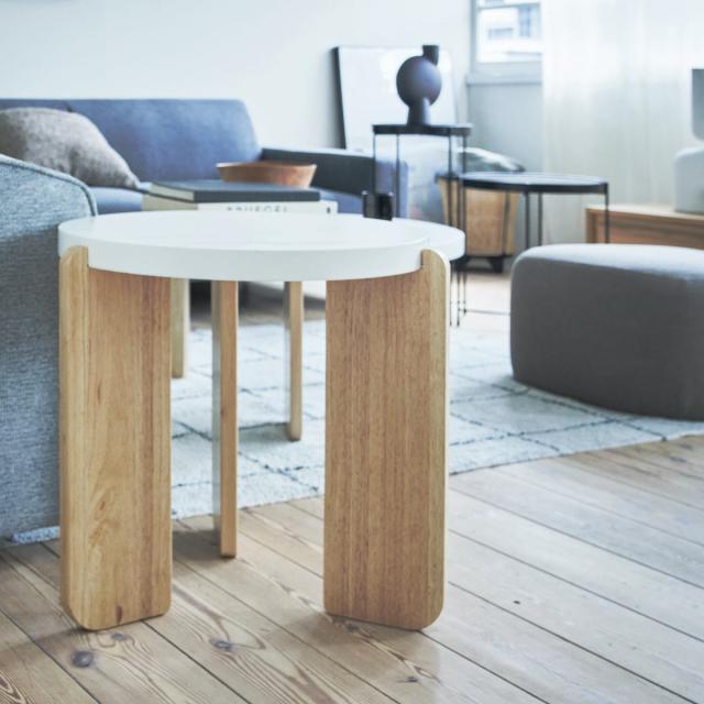 円型天板と天然木の脚が美しいサイドテーブル