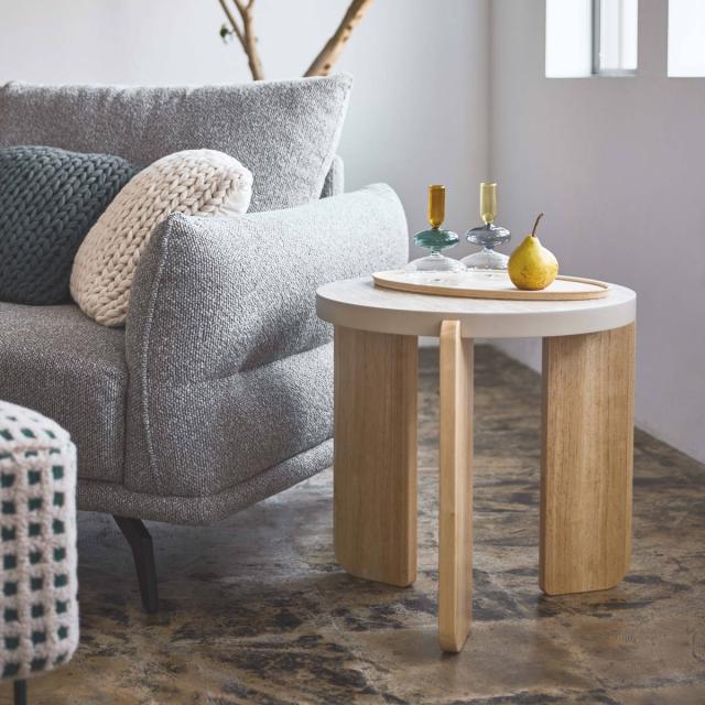 円型の天板×天然木のサイドテーブル