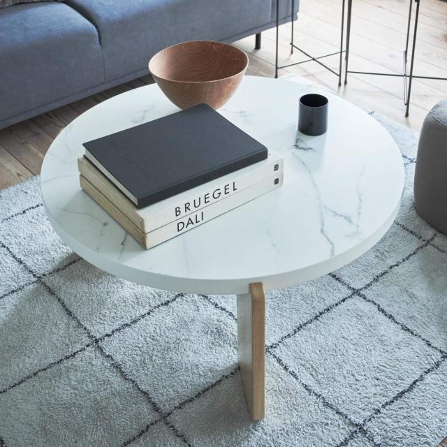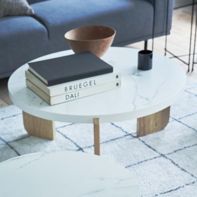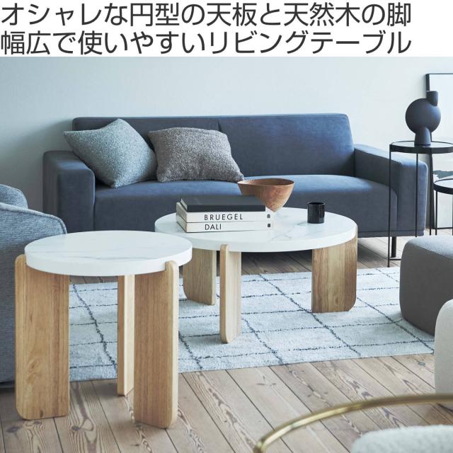 リビングテーブル 円型 高さ38cm ラウンドテーブルL ( 大理石調 木目調 丸 ラウンド テーブル 木製 天然木 ローテーブル センターテーブル )