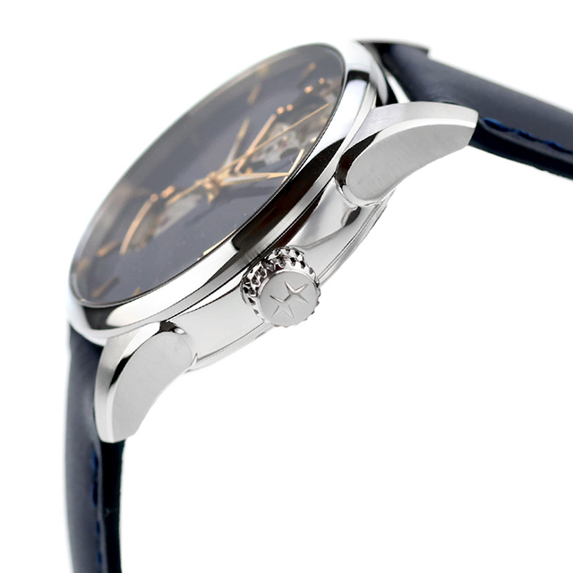 3年保証キャンペーン ハミルトン ジャズマスター 36mm オープンハート スイス製 メンズ レディース 腕時計 H32215642 HAMILTON JAZZMASTER Open Heart Auto アナログ ブルー ネイビー ◆HAMILTON(ハミルトン)はアメリカ発祥の老舗ブランドです。創業翌年に誕生した懐中時計「ブロードウェイ・リミテッド」は、他の時計よりも正確に時を刻むことから鉄道用時計として採用されました。その後も航空用時計や軍用時計として採用されるなど、品質の高さと流行にながされない独自のデザインが世界中の人々に支持されています。コンテンポラリーで洗練されたデザインと高度なクラフツマンシップが見事に融合した「ジャズマスター オープン ハート」。魅力的なミッドナイトブルーのダイヤルが輝き、アイキャッチなタイムピース。都会的な設計が放つ現代性と、無限の宇宙を表現したカラーが融合したモデルです。 機械式腕時計