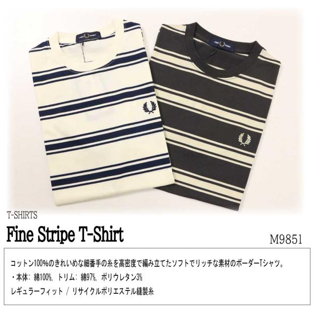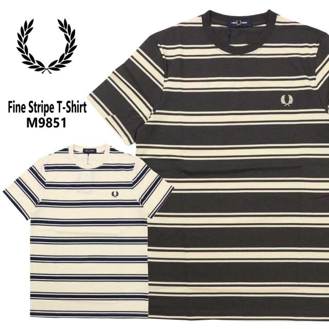 FRED PERRY フレッドペリー 半袖 Tシャツ Fine Stripe T-Shirt M9851 ストライプ ロゴ ワンポイント クルーネック 正規販売店 メール便 フレペリ
