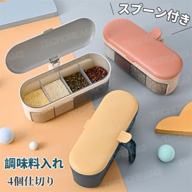 仕切り 調味料ポット 調味料入れ 透明 調味料ケース スプーン付き 蓋あり 分格收納 取っ手付き 湿気防止 調味料棚 調味料缶 調味料容器 調味料ボトル 砂糖入れ スパイス入れ おしゃれ 北欧風 シンプル 家庭用 お手入れ簡単 キッチン