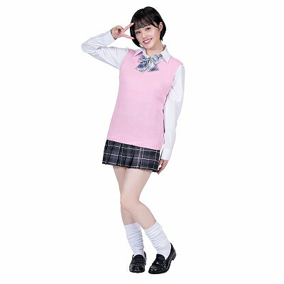 【透明感最強制服コーデ(Mサイズ)女性用】【送料無料】 制服 コスプレ レディース 制服 セット ベスト ピンク ワイシャツ ブラウス リボン ミニスカート 学生服 女子高生 jk コスチューム 女性 仮装 衣装 大人 tam35492