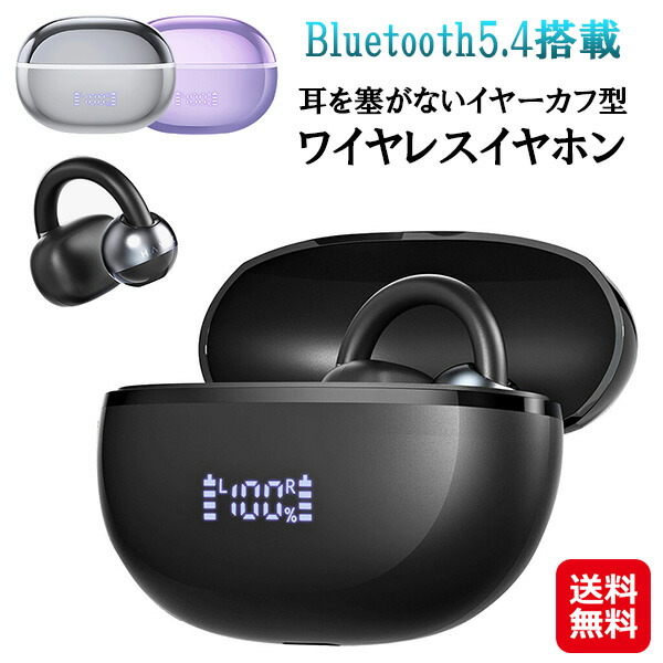 ■様々なご要望にお応えします【ワイヤレスイヤホン Bluetooth 5.4 イヤーカフ型 耳を塞がない マルチポイント対応 2台同時接続可能 音漏れ抑制 Hi-Fi 高音質 クリア 通話 電池残量表示 LEDディスプレイ イヤーカフ イヤホン 音漏れ防止 送料無料】