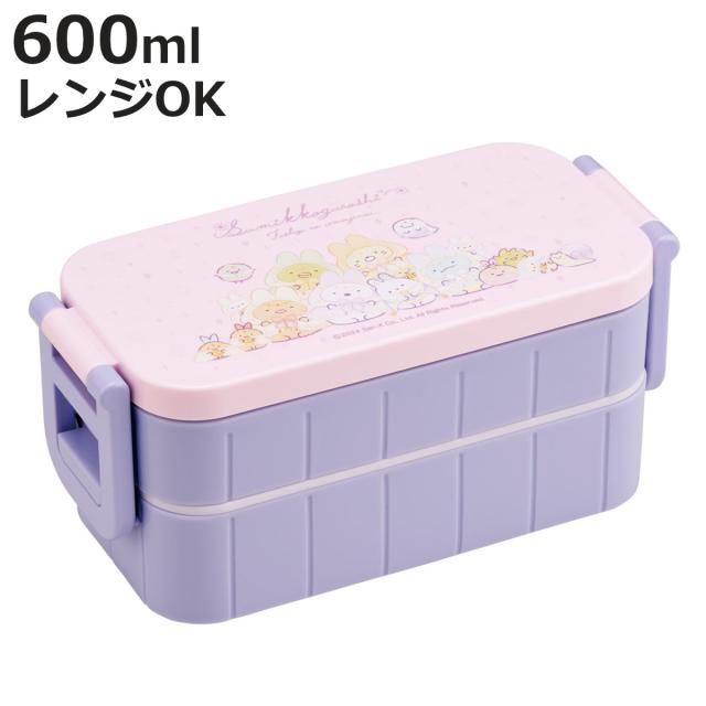 弁当箱 2段 600ml 抗菌タイトランチボックス すみっコぐらし おまじない ( お弁当箱 抗菌 ランチボックス レンジ対応 お弁当 二段 日本製 おべんとう箱 弁当 仕切り付き お箸付き 抗菌加工 銀 AG 2点ロック )