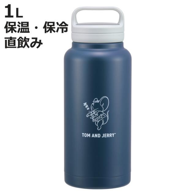 水筒 1L スクリューハンドルマグボトル トムジェリおひるね ( トムとジェリー 直飲み 保温 保冷 マグボトル ステンレスボトル ハンドル付き 真空二重構造 マグ ボトル ダイレクトボトル ステンレス マイボトル アウトドア 大容量 )