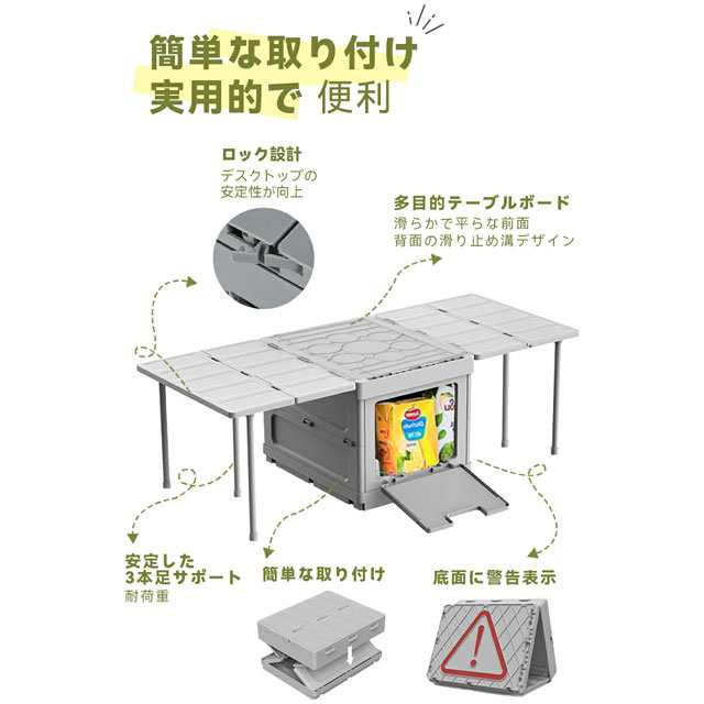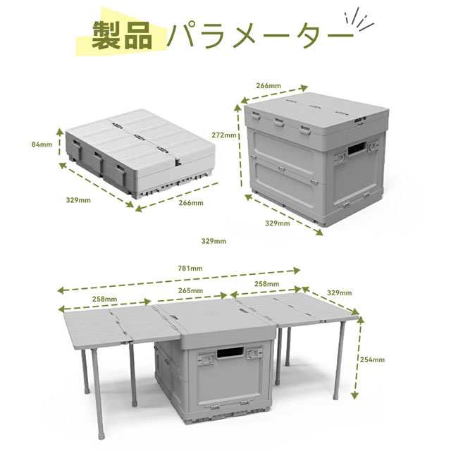 | 商品説明 | ◆【省スペース】 使うときはたっぷり大容量(24L)、使わないときは折り畳んでコンパクトに折りたたむと高さはわずか約8.5cmで、ちょっとした隙間に置いておくことができます。車のトランクがガレージ収納にも活躍できます ◆【積み重ね】 複数段の積み重ねが可能、重ねて使う時にも横から取出せる設計で便利、キャンプ 収納ボックとしてもおしゃれで実用。 ◆【おしゃれな収納ボックス】 北欧風のデザインのおしゃれな収納ボックスです。蓋は頑丈で、小さな操作台を持つことができます。ボックスの両端にはたくさん入れてもしっかり運べる取っ手があるので、持ち運びに便利。洗練されたデザイン性と持ち運びのしやすいコンパクトさが特徴的です。 ◆【幅広い使用範囲】 超軽量で折り畳み式アウトドアテーブルは、収納ボック、キャンプ テーブル、アウトドアチェア、三角表示板、ローテーブルなどとして、ソロキャンプからテント泊のコーヒータイムまで様々な場面に大活躍。アウトドア、キャンプ、テント泊、バーベキュー(BBQ)、ピクニック、ソロキャンプ、運動会、花見等の場合にオススメします。 |