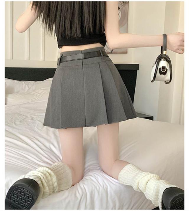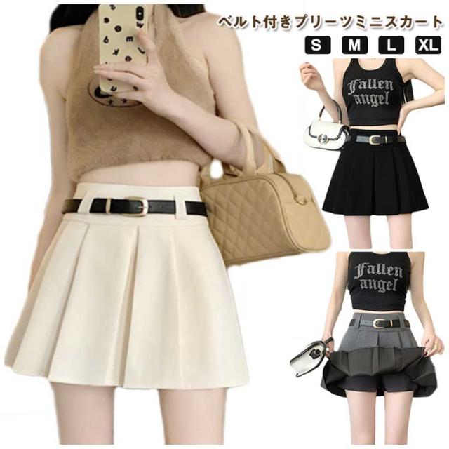 プリーツミニスカート レディース ショート丈 ミニスカート 裏地付き ベルト付き フレアスカート 膝上丈 Aライン ハイウエスト インナーパンツ付き 着痩せ 美脚 カジュアル 無地 ダンス 発表会 通学 通勤 文化祭 韓国風 春夏 送料無料