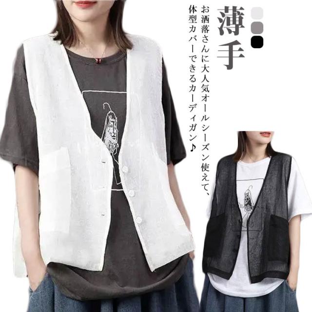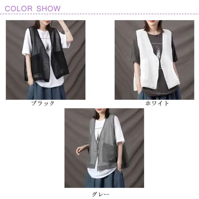 メッシュ ベスト レディース ポケット 夏 春夏 大きいサイズ 前開き 薄手 お洒落 チョッキ はおりもの レイヤード メッシュ ジレ 重ね着 ミニ丈 きれいめ 透かし編み ミセス シニア 母の日 プレゼント 女性用 送料無料