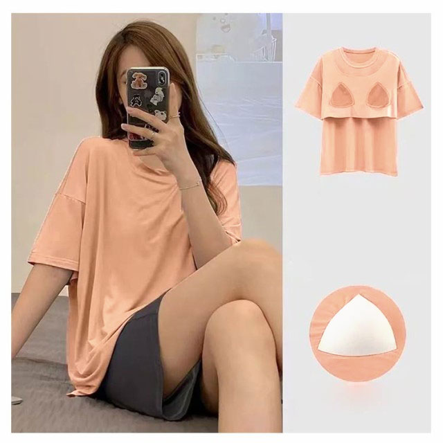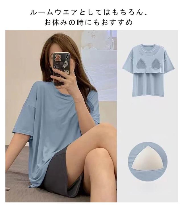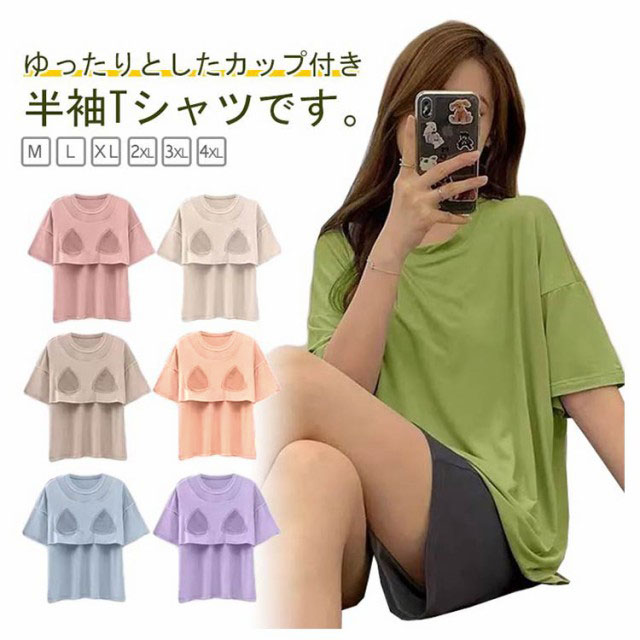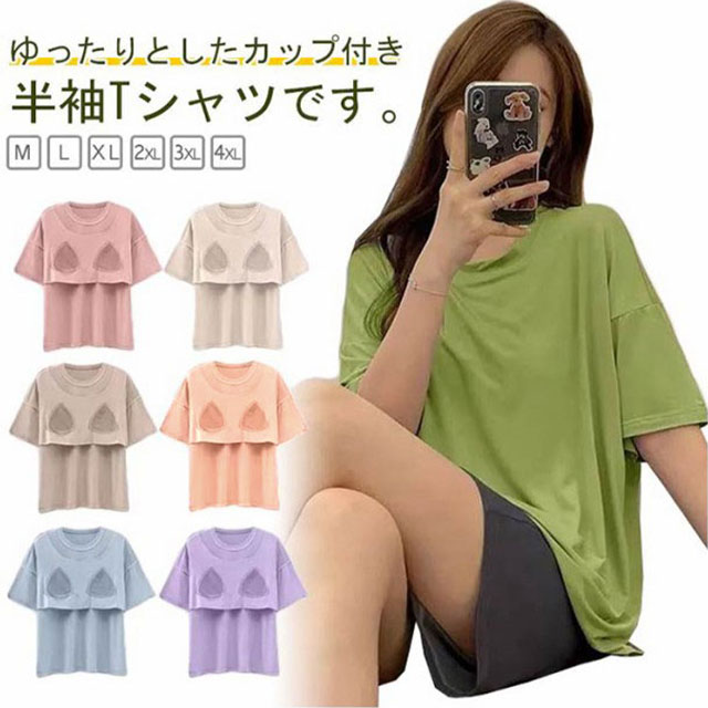 カップ付き 半袖インナー ブラトップ パッド付 Tシャツ カットソー Tシャツブラ トップス 大きいサイズ ストレッチ 下着 ブラトップ 無地 速乾 伸縮性 通気性 締め付けない 肌着 ルームウエア ジムウエア ヨガウエア 部屋着 送料無料