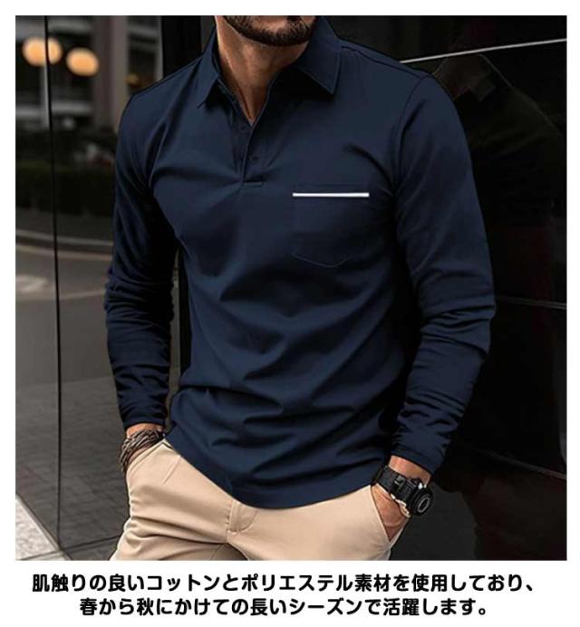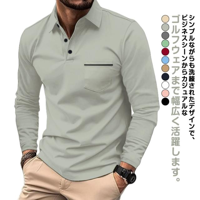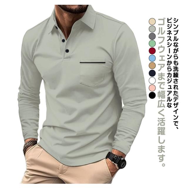 ポロシャツ 長袖 メンズ ビジネス ゴルフウェア 無地ポロシャツ トップス Poloシャツ ゴルフ 通勤 長袖ポロ メンズポロシャツ 紳士服 春 秋 カジュアル