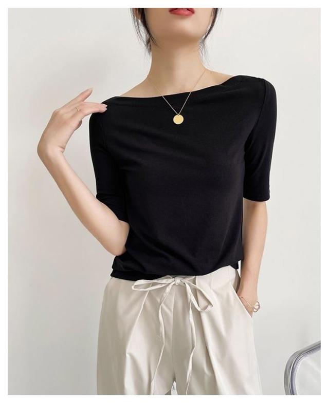 送料無料 Tシャツ レディース トップス カットソー tシャツ 七分袖tシャツ インナー 七分袖 着?せ 丸首 重ね着 無地 シンプル カジュアル 大きいサイズ 春 ボートネック