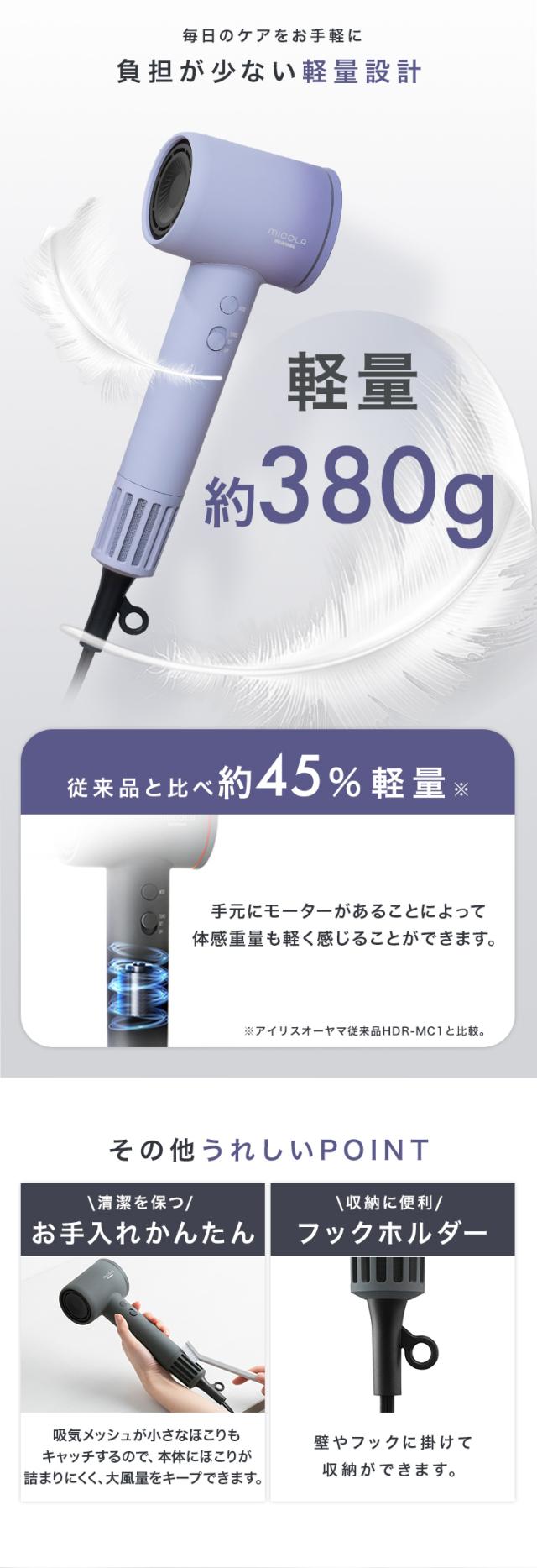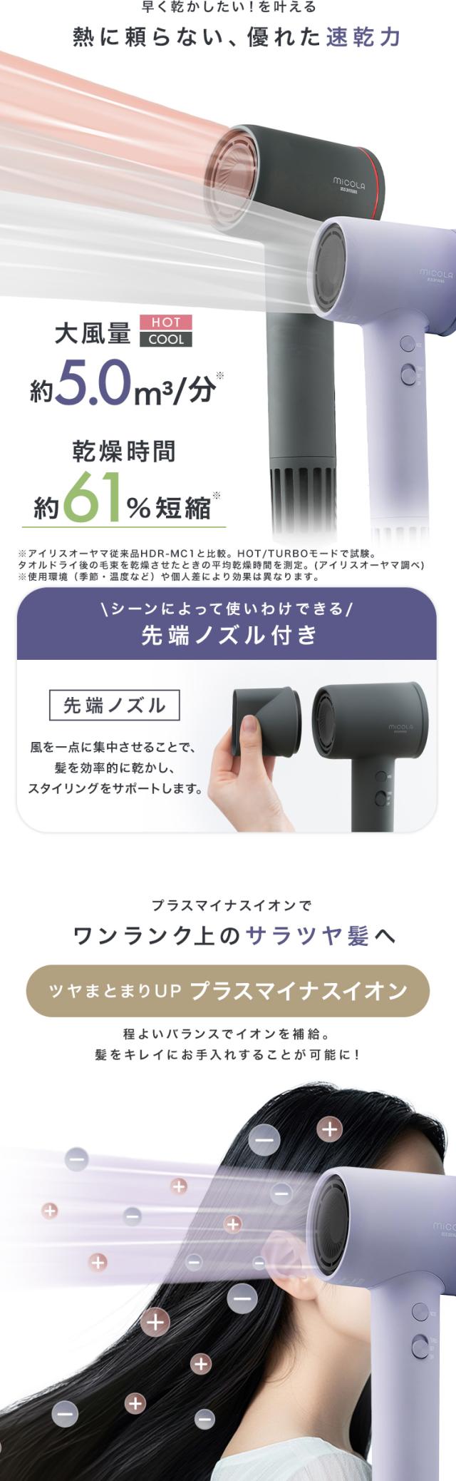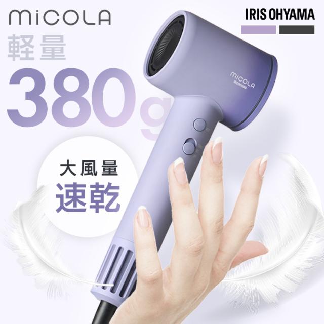 【ノズル2種付き】 ドライヤー 大風量 MiCOLA アイリスオーヤマ * 速乾 クイックイオンドライヤー 軽量 時短 4段階温度調整 ヘアドライヤー プラスマイナスイオン 低温 頭皮ケア 軽い ミコラ お手入れ簡単 大風量ドライヤー