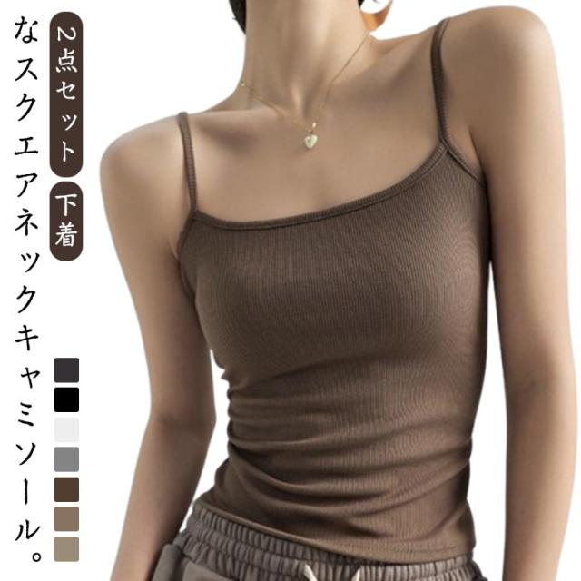 リブ キャミソール 2点セット レディース 下着 インナー キャミ スクエアネック バックオープン きれいめ 大人可愛い テレコリブ 通気性 透けない 蒸れない デコルテ スリム ストレッチ 春 夏 秋 レディースインナー スクエアネックキャミソール 【送無】
