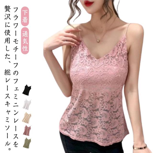 キャミソール Vネック レース レディース 下着 インナー キャミ 総レース 大人可愛い きれいめ 花柄 通気性 透けない 蒸れない 前後Vネック 春 夏 秋 レディースインナー レースキャミソール おしゃれ セクシー フェミニン 母の日 プレゼント 【送無】
