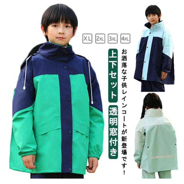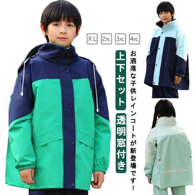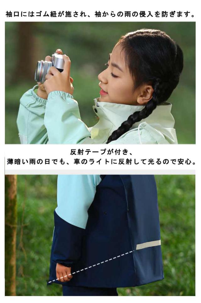 レインコート キッズ 上下セット 子供用 小学生 ランドセル対応 レインパンツ カッパ 雨具 フード付き 梅雨対策 女の子 男の子 お洒落 防水 ジュニア セパレート レインスーツ 小学校 レインウェア 軽量 通気性 送料無料