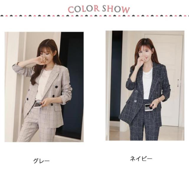チェック柄 スーツ セットアップ レディース リクルートスーツ 女性スーツ パンツスーツ セレモニースーツ ジャケット 洗える フォーマルスーツ ビジネス リクルート オールシーズン 入学式 卒業式 通勤 OL グレー ネイビー S M L XL