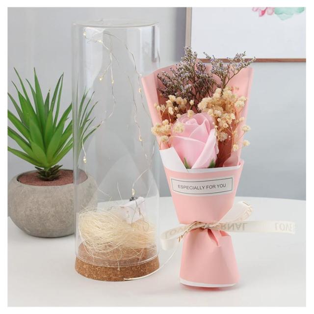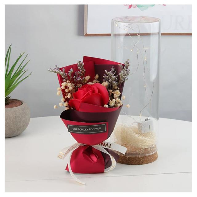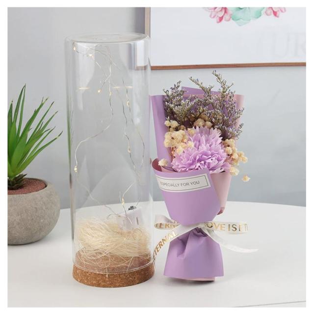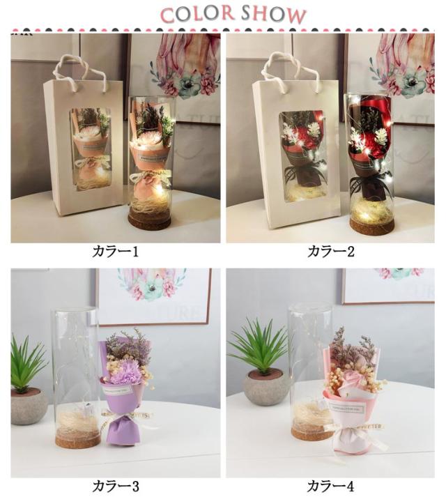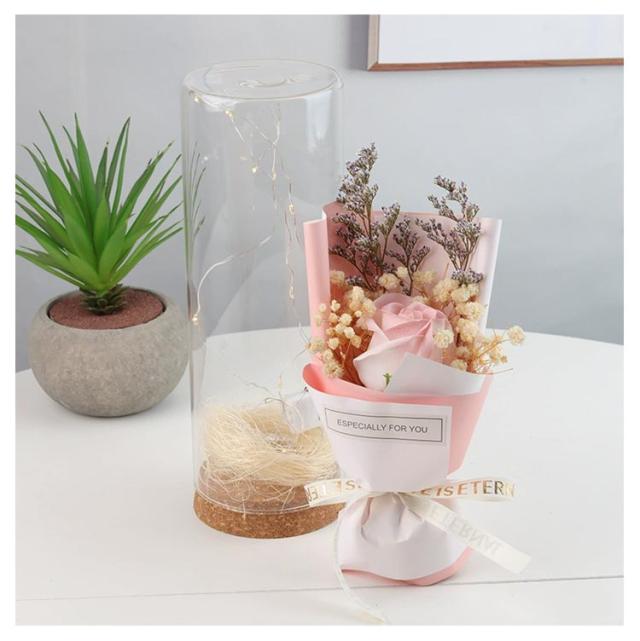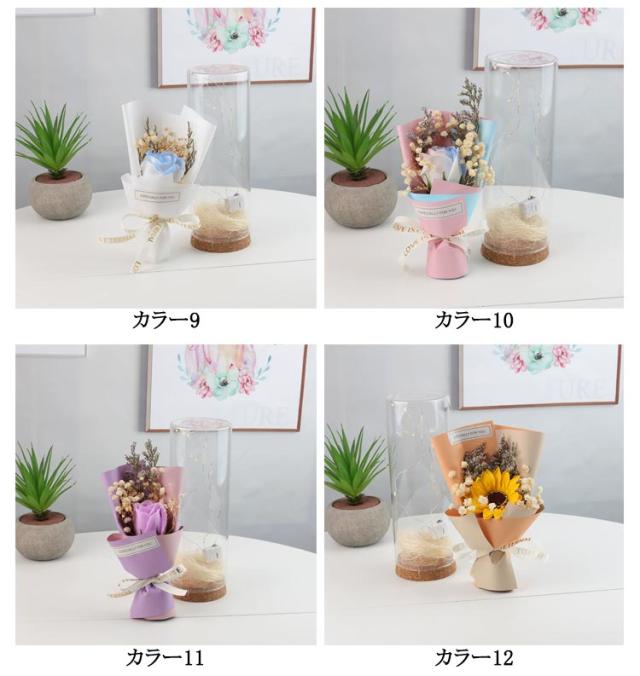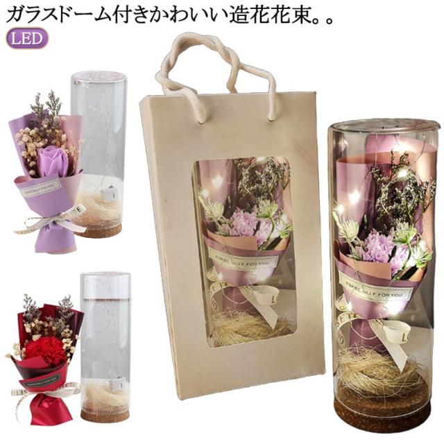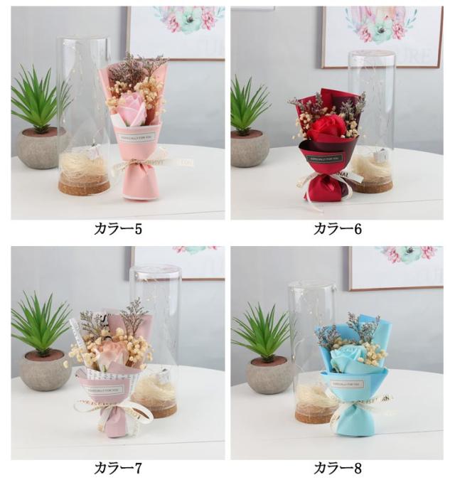 ガラスドーム付き ソープフラワー 花束 ソープフラワーギフト 石けんフラワー 防塵 父の日 ブーケ 乾燥花 シャボンフラワー 光る LED 結婚祝い 造花 誕生日 フラワーソープ 高級感 母の日 女性 退職祝い
