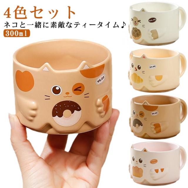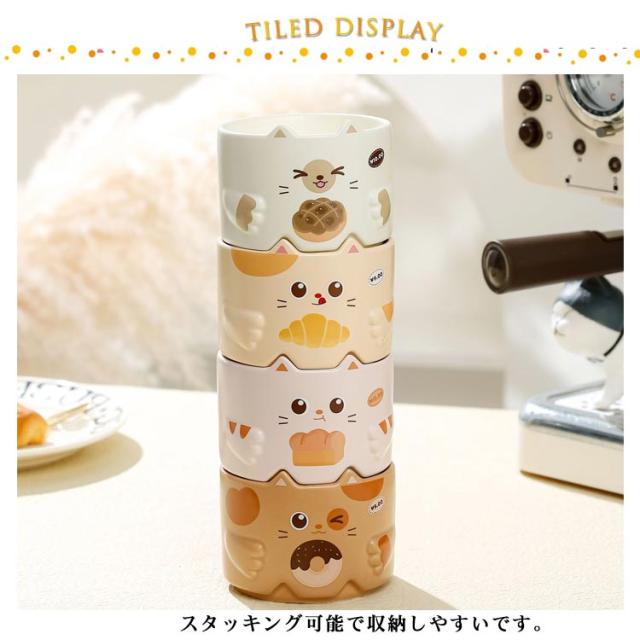 スタッキングマグカップ マグカップ 猫 ねこ ネコ 300ml 4色セット スタッキング 収納 コーヒーカップ 重ねられる かわいい おしゃれ 動物 アニマル