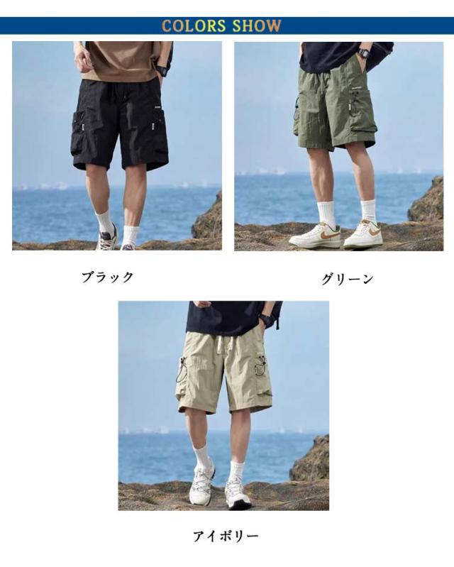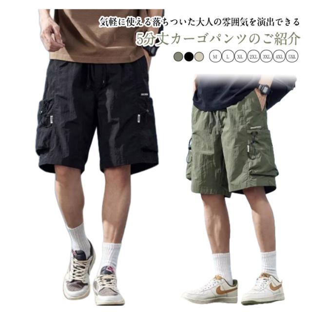 カーゴパンツ メンズ ゆったり ひざ下 カーゴ 膝下丈 5分丈 夏 ワークパンツ ミリタリー スポーツ チノパンツ カーゴパンツ ハーフパンツ ショートパンツ 短パン ストリート系 ダンス 衣装 短パン ストレート 無地 春夏