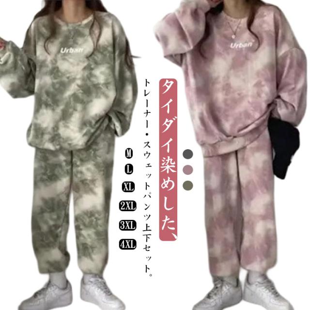 トレーナー パンツ スウェット レディース タイダイ染め パジャマ 長袖 スウェット 上下セット ジャージ トレーナー ダンス衣装 ルームウェア 部屋着 ゆったり ナイトウェア 寝巻き スポーツウエア