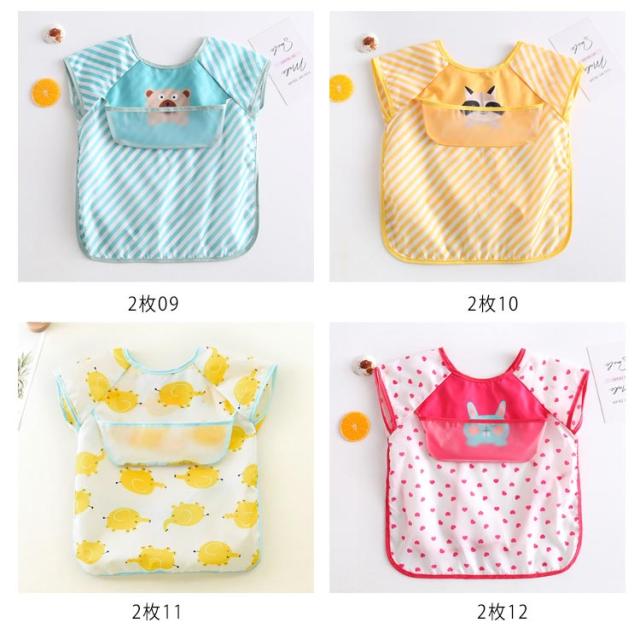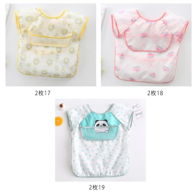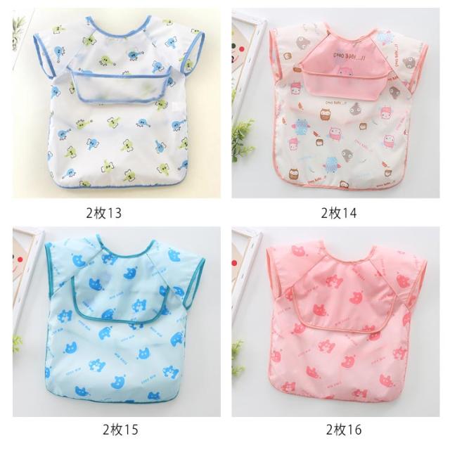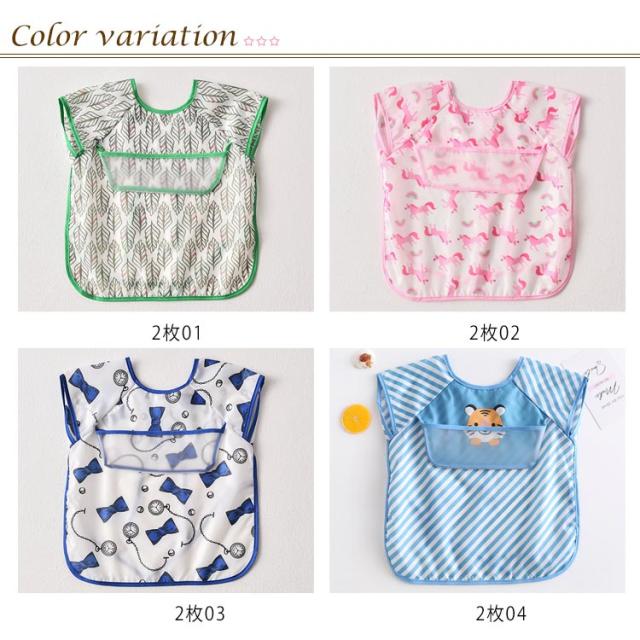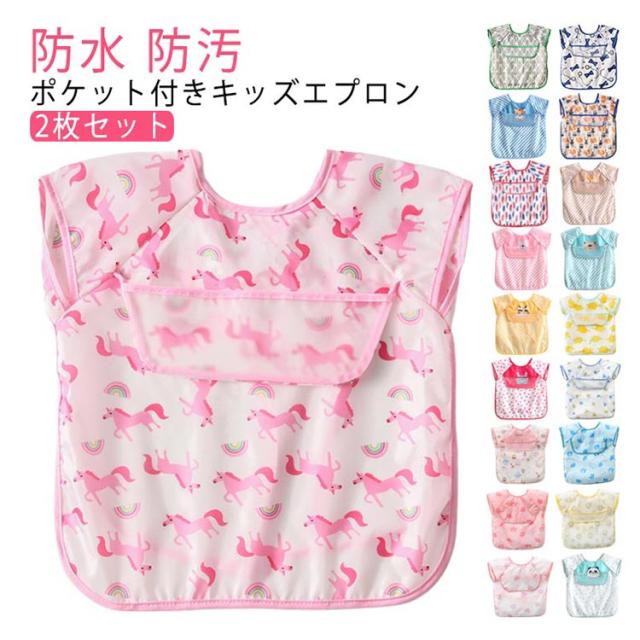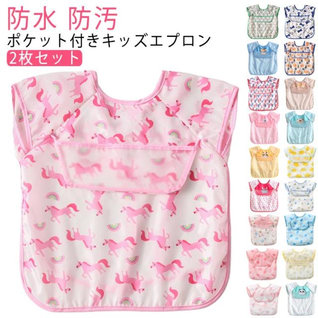 キッズエプロン 2枚セット かわいい 防油 エプロン 子供 防水 ベビー ポケット付き お食事エプロン スモック ロング 2枚セット 保育園 幼稚園 食堂
